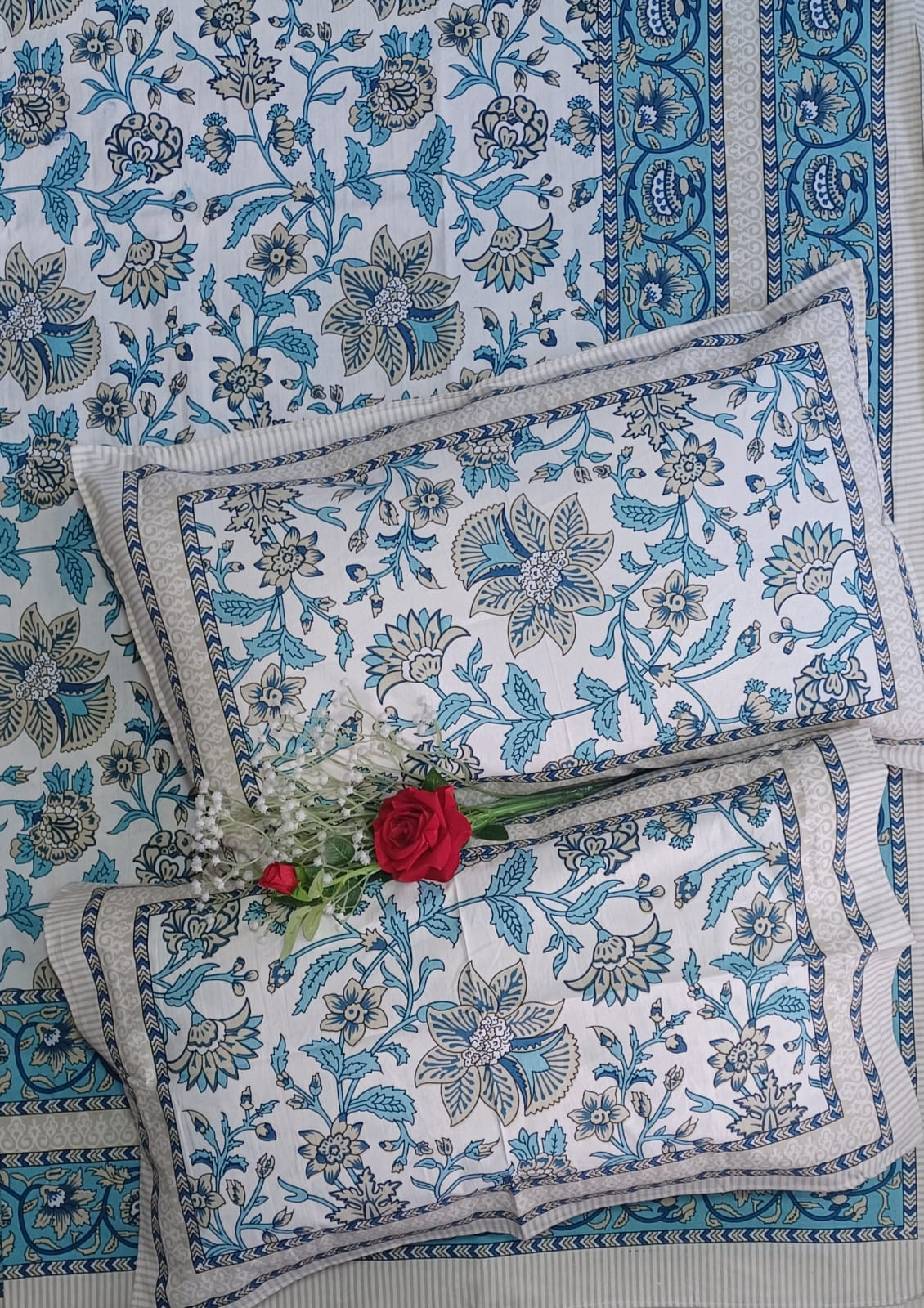 • Quantity: Set of 3 Pieces (1 Double Bed Sheet + 2 Pillow Covers)