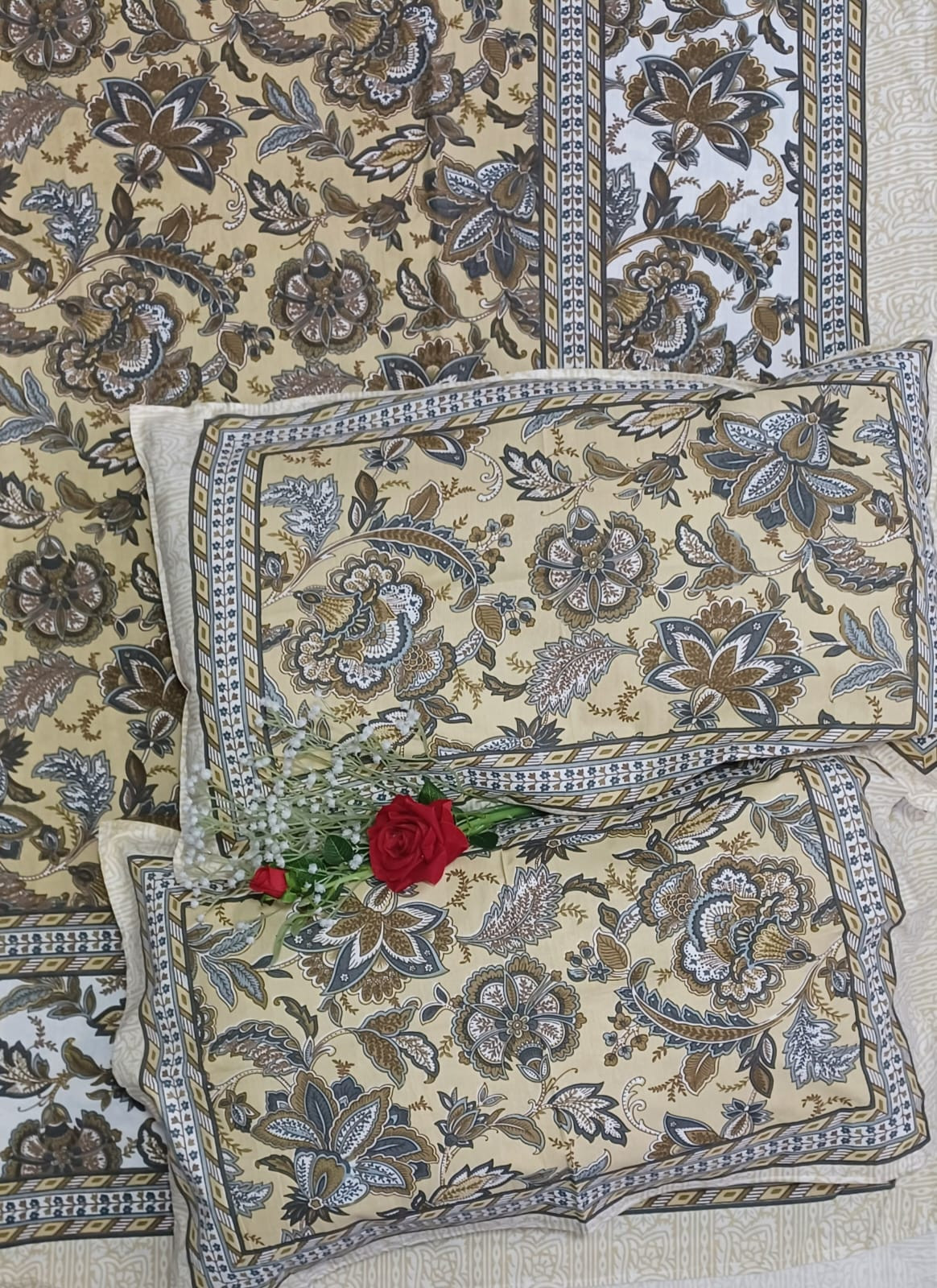 • Quantity: Set of 3 Pieces (1 Double Bed Sheet + 2 Pillow Covers)