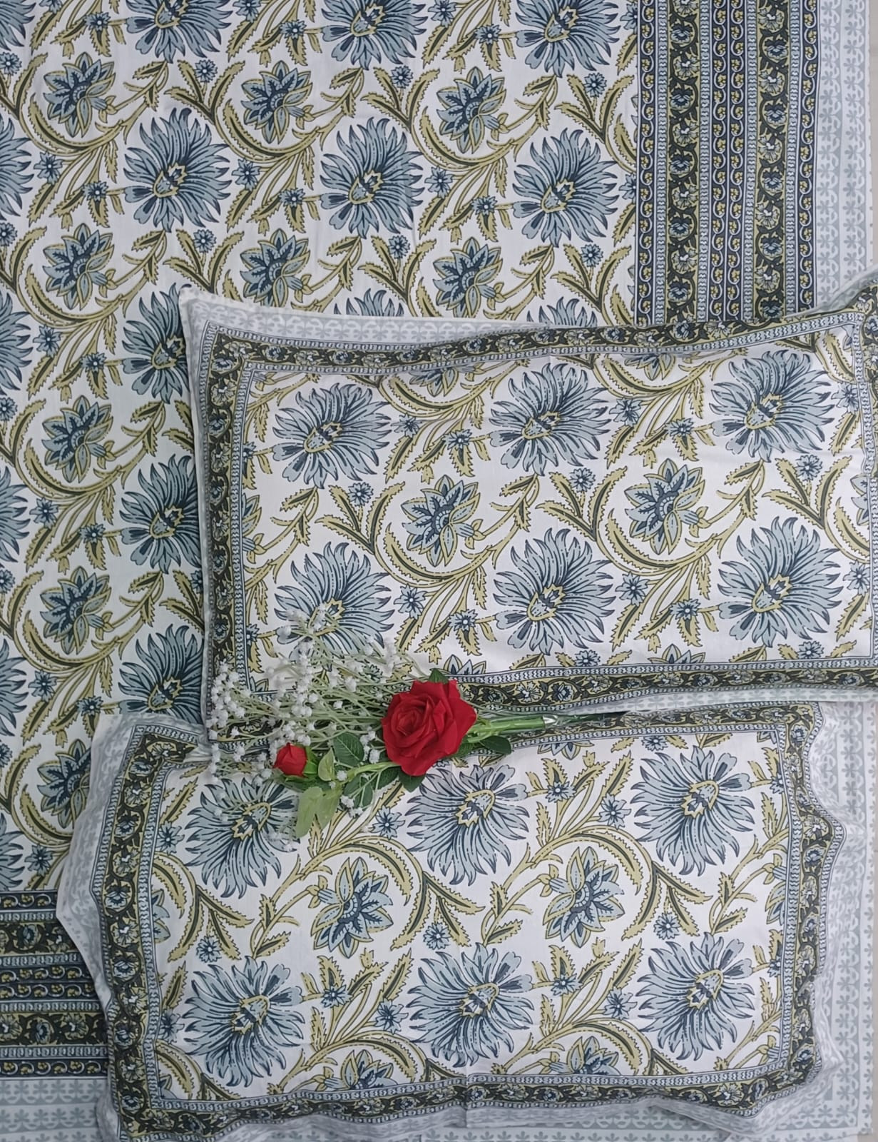 • Quantity: Set of 3 Pieces (1 Double Bed Sheet + 2 Pillow Covers)