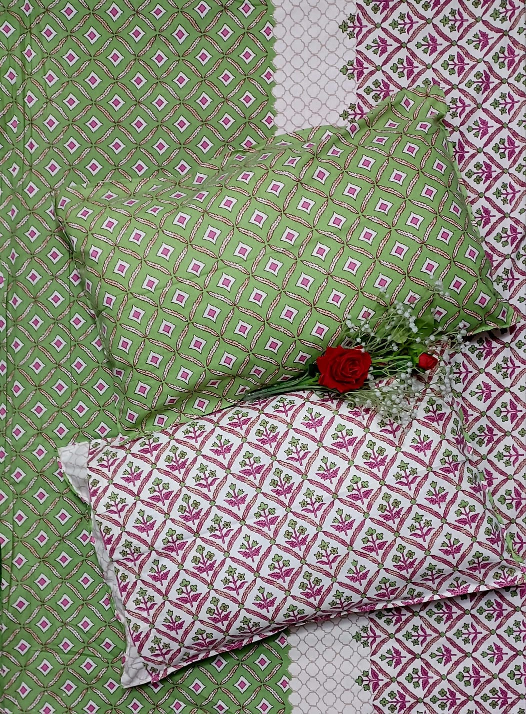 • Quantity: Set of 3 Pieces (1 Double Bed Sheet + 2 Pillow Covers)